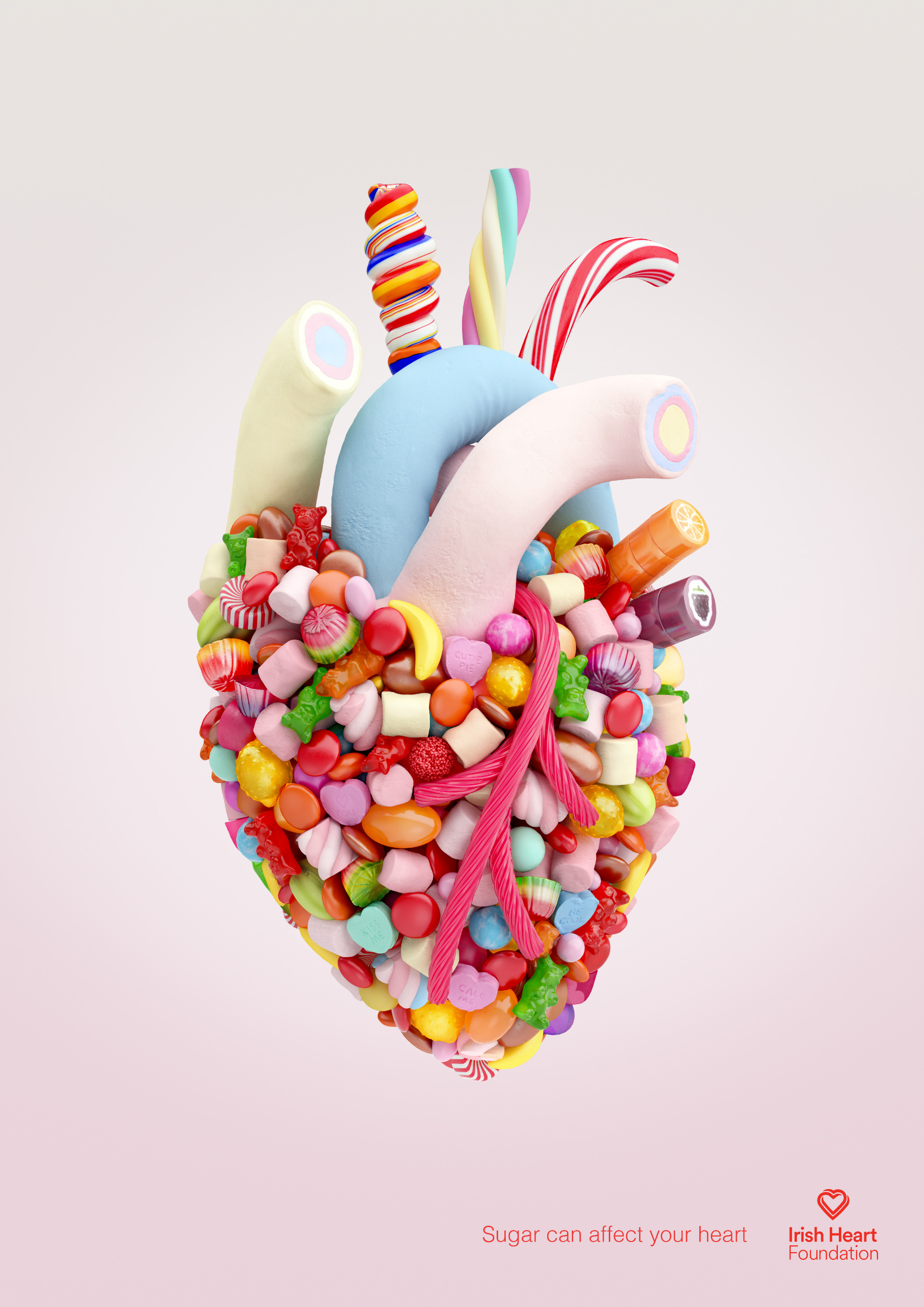 A print and outdoor ad to draw attention to the harm that excessive sugar can have on a child's heart.